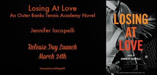 Hi there! Today I’m sharing in the festivities for Jenifer Iacopelli’s new release: LOSING AT LOVE. This is a sequel to the (smash!) hit GAME. SET. MATCH. and definitely set to be a winner. (My lame tennis puns will now cease…)