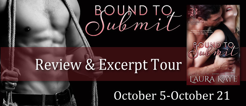 Hi there! Today I’m sharing a review for a brand new BDSM erotic romance from Laura Kaye. BOUND TO SUBMIT is the first novel in her new Blasphemy series. Expect sweet sweet loving, and dirty rope tricks…