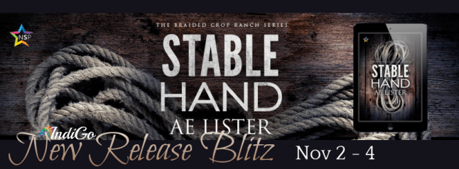 Hi there! Today I’m excited to share a review and giveaway for a new M/M/M heavy kink romance from A.E. Lister. STABLE HAND is the first book in the Braided Crop Ranch series and is deliciously naughty and funny and a great beginning.